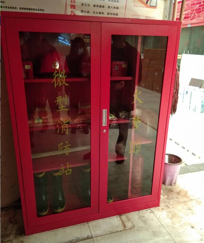 今天又新添置了两组微型消防站,分别摆放在东西大厅。每处配备了安全帽两顶、防毒面罩两个、消防服两套、板斧一把、灭火器一个、胶鞋两双、水枪水袋一副、绳索一条,品种齐全!