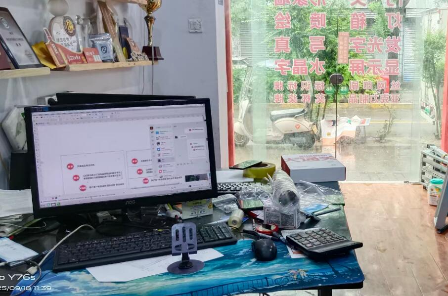春蕾广告家有自己崭新的激光雕刻机,利用激光束的高能量密度,聚焦到材料表面,使材料表面局部区域迅速加热至熔融、汽化状态,或发生光化学反应,从而去除材料,形成雕刻痕迹。