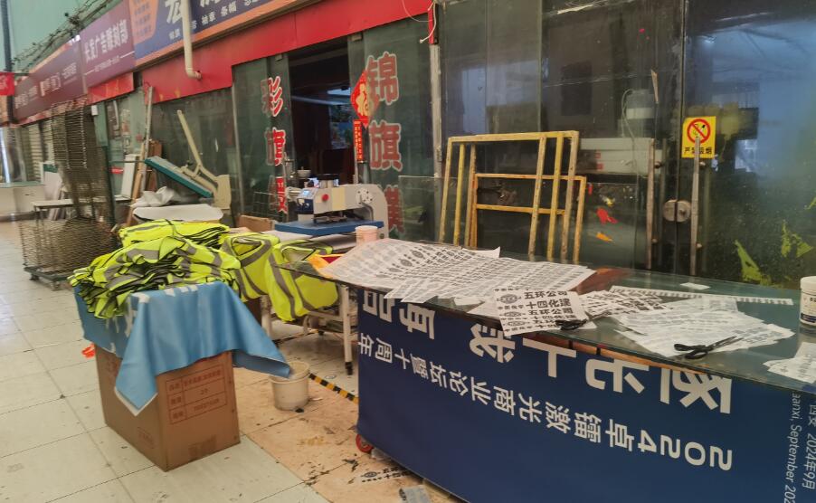 我们是大观园彩印广告市场南排:1045-1.1049.1051的宏原祥广告,我们家专业制作锦旗、绶带、袖章和条幅,我们制作的马甲标志服更是一绝,远看一层单薄的材料,实际是都是高质量的服饰材料,要醒目还要质量好,毕竟都是在一线施工师傅们要穿在身上的,所以我们制作的是非常精致。