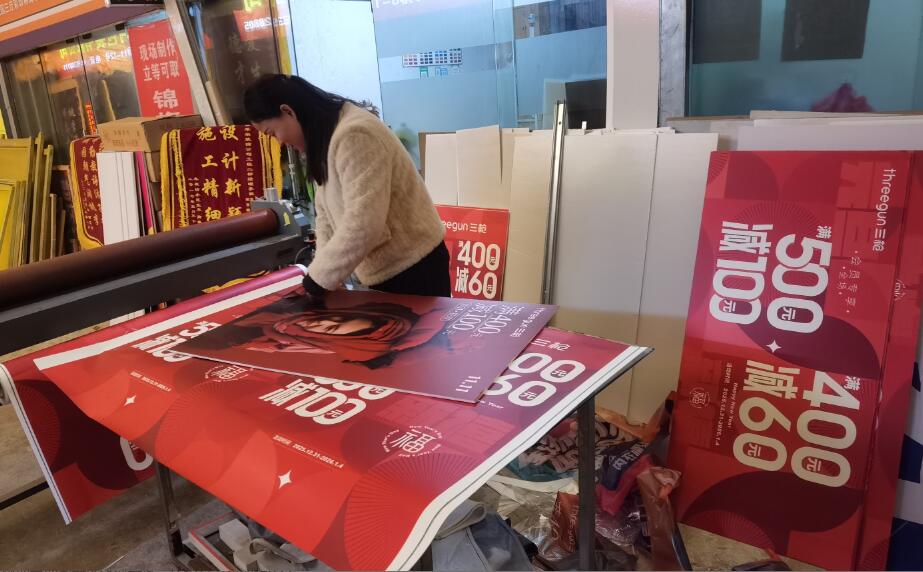当流年吉星与个人努力形成合力,便是财务自由之路开启之时,当新年优惠宣传展板整齐排放在公众面前时,才知道女士也能顶上半边天,男士们能做的事情当代女士们也可以很轻松的完成,当盛凯华广告的女企业家把展板制作好并且把商铺收拾的井井有条干干净净时,可能好多男士老板们都汗颜无地了,为嘛呢?因为男人大多能做的活计,女士们也可以做的完美无缺。
