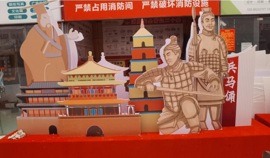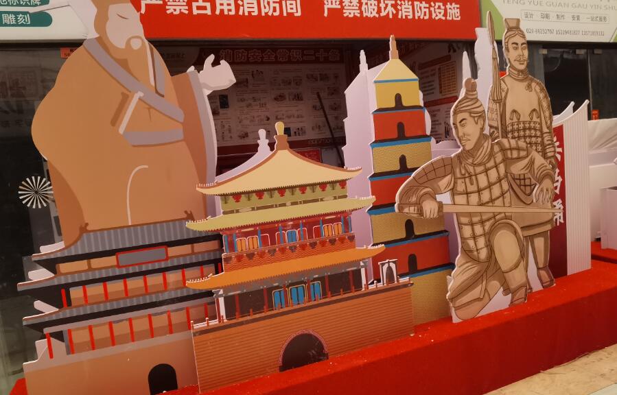 陕西鹏誉-欣艺广告金治国金老板家,喜迎新年造型大订单,从早到晚都在加班细致的设计制作着属于古城的文化展板,一块块精致色彩艳丽的广告宣传展板带你一起走进三秦大地,半部中国史、一座长安城,大雁塔、兵马俑、还有黄鹤楼、天安门也来了,赶快都仔细地观赏一下吧!