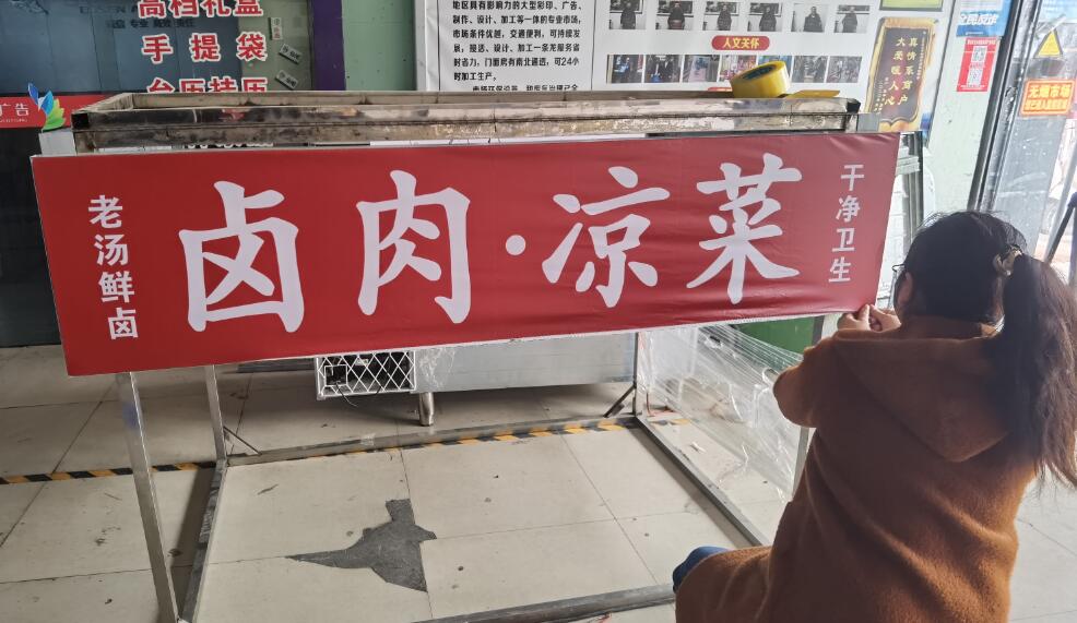 来来来,卤肉、凉菜来了,有想吃的赶快来,不过你真要来了,我也只能你给你个电话,让你跑腿去找卤肉的老板买,我们不卖卤肉、凉菜,我们是广告设计制作的搬运工,我们是做户外广告装饰的,我们是助力小吃摊上的广告宣传的,我们是大观园彩印广告市场东大厅东-4、东-6的恒嘉创美广告,我是老板王恩鹏,我的电话:187 9296 9887,你要是找我订制广告宣传展板,那你可算是找对了人,我们是专业广告印刷制作的工厂店。